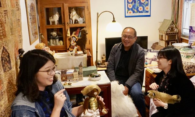 黃怡、劉偉成、羅樂敏在西西故居客廳裏,說物件的故事。