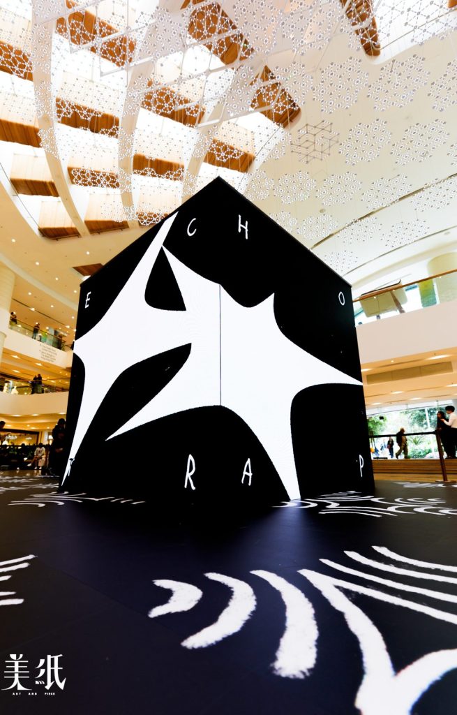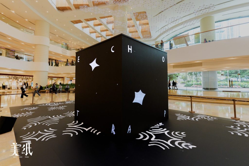 在Whitney Museum展出時作品是以三個小型的影像立方體呈現,放在一個相對狹小的樓梯間裡。而這次的空間大了許多,所以我想,為什麼不放大呢?我覺得在這裡用一個大型立方體更能對應作品的概念,因為在這個場域裡,我的「echo traps」可以被看得更清楚、更明顯。透過太古地產、太古廣場和巴塞爾藝術展,這件作品得到一個更大的平台,被更多人看見。但同時,我還是被困在這個結構裡——這個立方體仍然是一個陷阱,只是變成更大的陷阱。