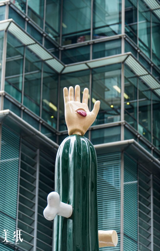 Gabriel Rico來自墨西哥哈利斯科地區,他常以當地的仙人掌為創作靈感,因為這是其童年環繞的自然符號,比樹木更常見、更親切。這次在星街小區展出的《I Have Anticipated You II》,他將巨大仙人掌造型覆蓋上個人物件:木樁、鞋子、鑽石、刷子、硬幣與手形,甚至他喜愛的帽子,這些元素看似雜亂黏附,實則解構自我,探索人性記憶與情感投射。對Rico而言,物件是連結世界的鑰匙,而理解往往是源自經驗。他相信,人們不斷將自我投射至現實,再透過體驗重塑自身,而我們本是自然一部分,非分離存在。這件雕塑不僅反映人與自然的羈絆,也如一座無語言的橋樑。在多元文化的星街小區,每位觀眾都能夠依個人記憶與過去,獨特共鳴、對話與分享。