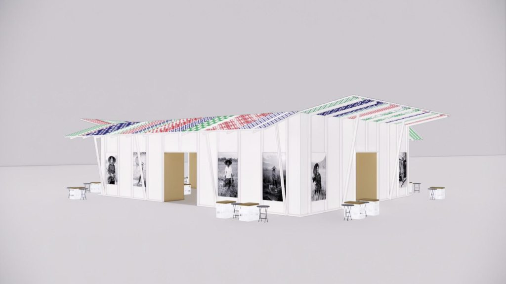 展館採用「開放盒子」的建築概念,透過多樣化的外層處理,融合樸實的優雅與未來主義的美學。外牆則向品牌工匠與設計師致敬,透過紀實肖像展現其匠心精神。整體設計將傳統紋理與現代材質交織,營造出既熟悉又前衛的空間,彰顯文化融合與敘事美學的精神。