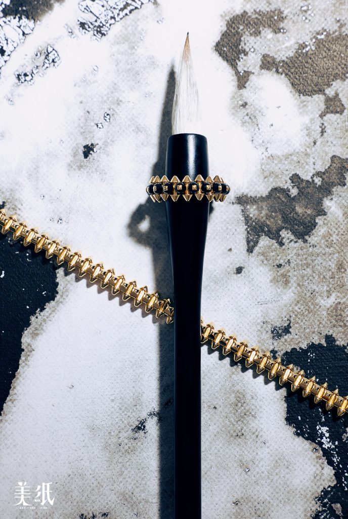 在我印象中,Cartier的珠寶給我一種很優雅、很高貴的感覺,但是這個系列卻以鍋釘般的部分組成,看起來不再是單純的簡約,而是以華麗的感覺表達一種繁複的感覺。很有趣,我覺得自己的書法和Clash de Cartier系列也有相似的地方。兩者都有一種叛逆的美,但當中卻主張很講究、很精緻,絕非胡鬧的型格美學。