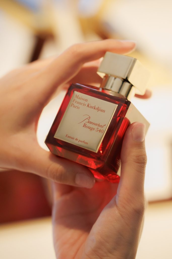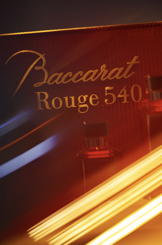 2013年冬季,Francis Kurkdjian出現在Baccarat位於巴黎的辦公室。這間擁有近兩百年歷史的工坊,自19世紀中葉起便為香水業製作水晶瓶,曾為眾多品牌製瓶,但數次自創香水皆未能成事。「當時Baccarat總裁對我說:『我希望你捕捉Baccarat的精神與光環。』作為法國人,我當然聽過Baccarat的盛名,但仍請對方親自闡釋。她解釋了水晶與玻璃的差異:水晶因含特殊礦物質而更沉重,卻更透亮、更具光澤感,敲擊時會發出清脆之聲。我追問品牌標誌色,正如愛馬仕之橙、香奈兒之黑白,她答道:『是紅色。我們每盞枝形吊燈都嵌有微小的紅色水晶,若缺少這點紅,便不是真正的Baccarat吊燈。』」Baccarat Rouge 540將24K金粉融入水晶原料,再次以540°C高溫加熱八小時,水晶會從透明逐漸轉為緋紅。這種科學煉金術般的過程令Francis Kurkdjian感驚嘆——19世紀中葉法國工匠竟能透過貴金屬實驗創造出如此奇蹟。
