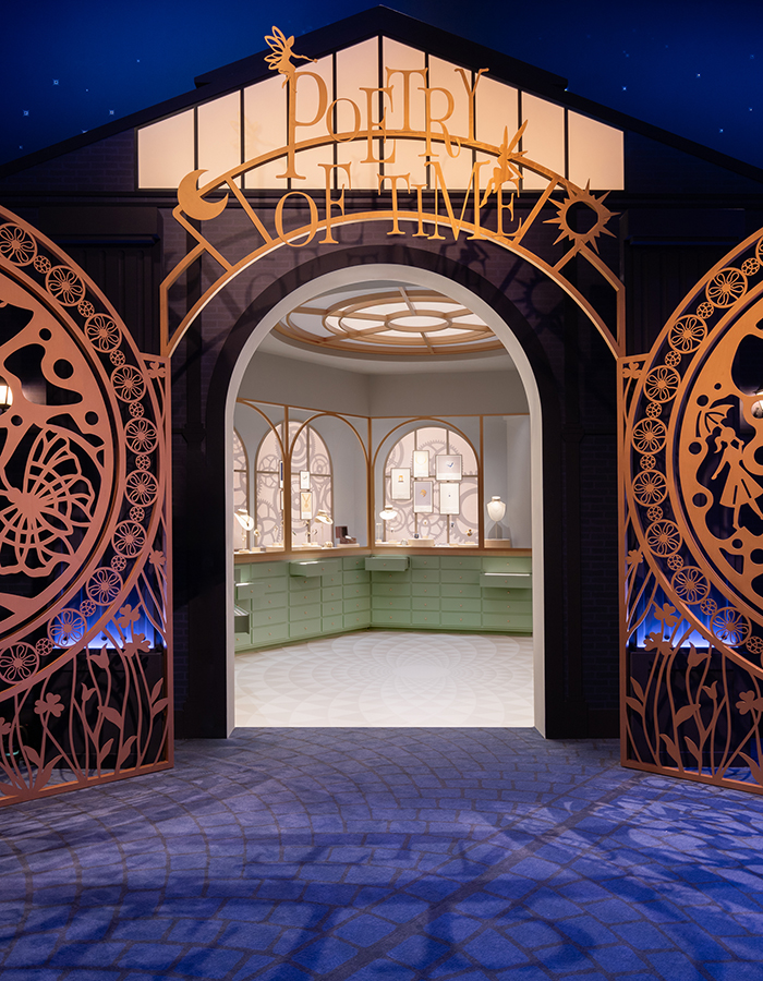 在「Poetry of Time時間的詩篇」的展覽中,共劃分為五大主題:愛情故事、詩意星象、迷人自然、芭蕾舞伶與仙子,以及訴說時間的珠寶。展覽將設有三大製表工作坊,呈獻製表師、工藝匠人、珠寶鑲嵌師及自動機械裝置專家的非凡技藝。其中,Poetic Complications詩意複雜功能腕表系列、Extraordinary Dials非凡表盤系列,與Extraordinary Objects非凡工藝臻品系列,皆完美體現世家詩意與技藝的交融之美。